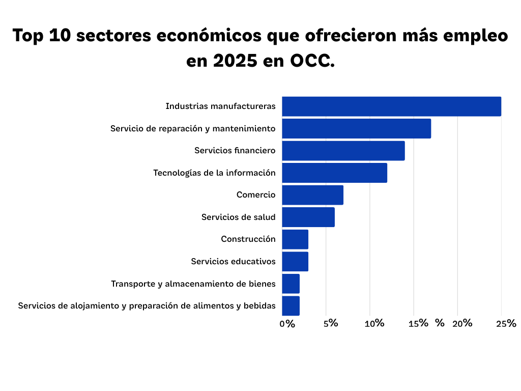 Del lado de la oferta de talento, más de 13 millones de personas se encuentran registradas en OCC para buscar empleo durante 2025, un universo mayoritariamente profesionalizado, con estudios universitarios y experiencia en áreas clave para la economía nacional. Este cruce entre alta demanda empresarial y una base amplia de candidatos confirma que el empleo formal sigue siendo un eje estratégico para el desarrollo económico del país.