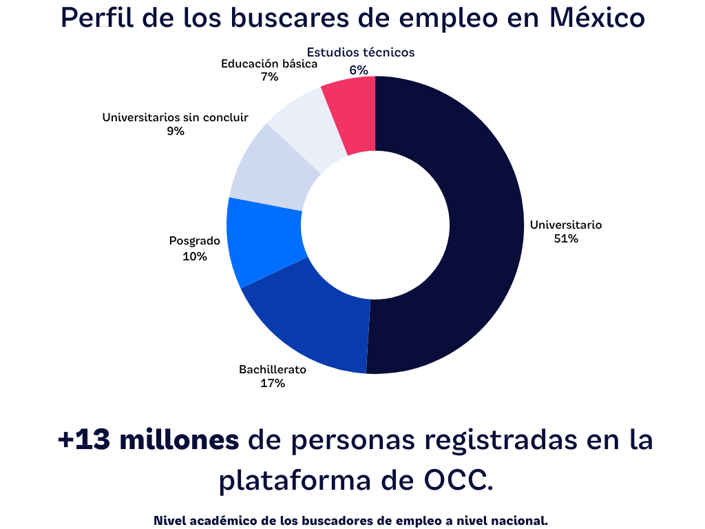 Durante 2025, más de 13 millones de personas utilizaron OCC para buscar oportunidades laborales. Su nivel educativo es el siguiente: