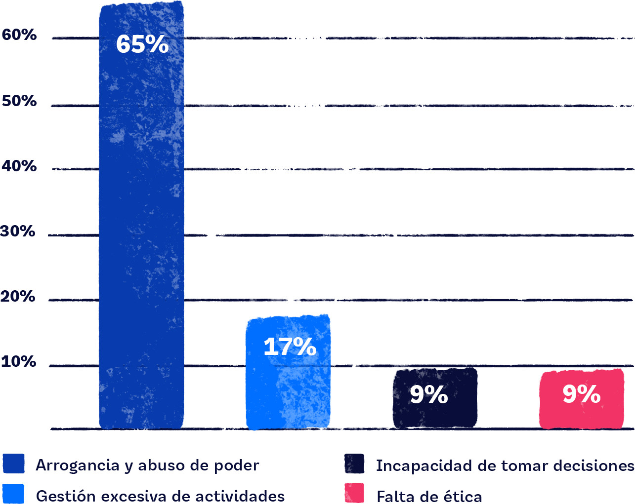 Para tener más clara la figura de un mal líder, realizamos un sondeo para identificar los rasgos que les caracterizan y estos son los resultados: